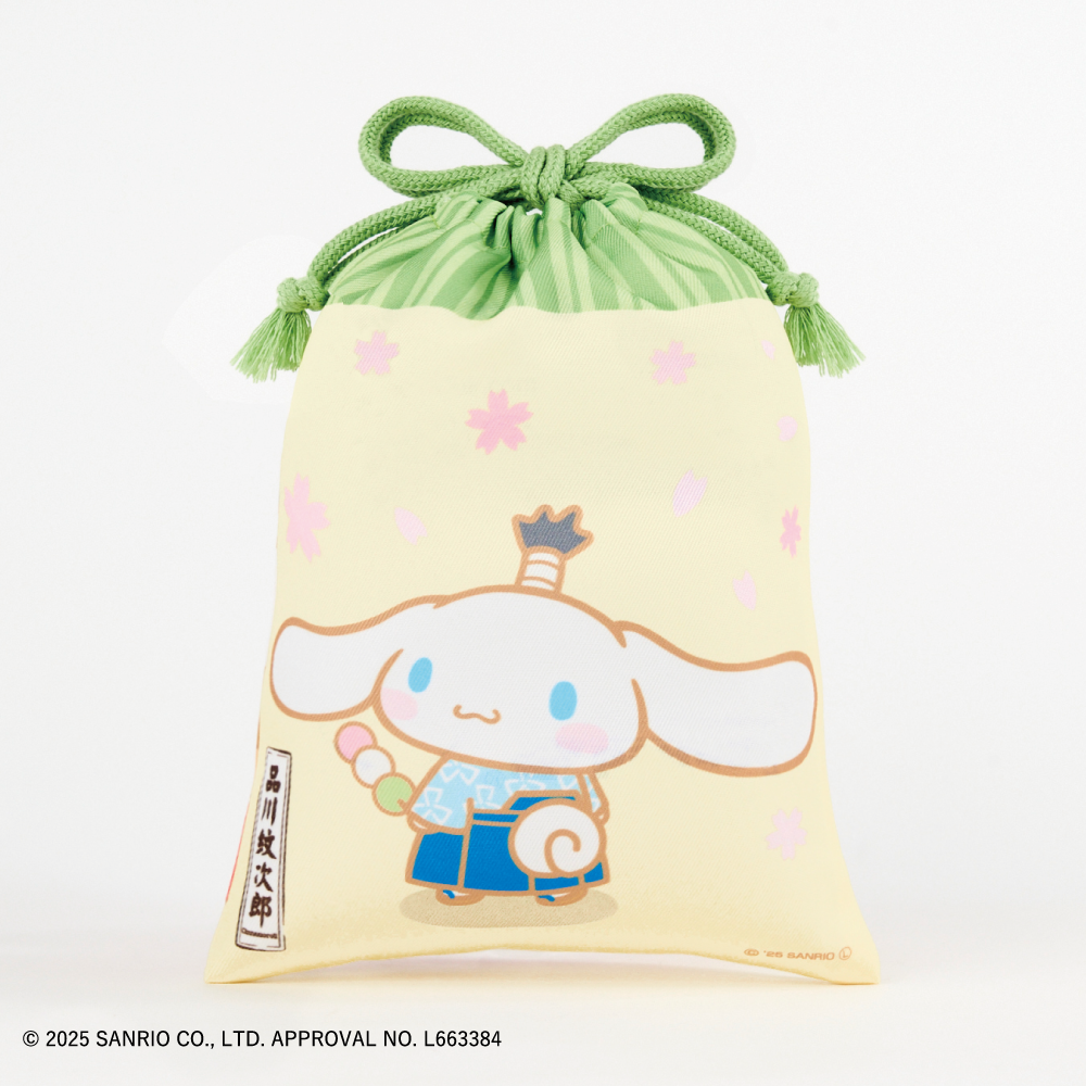 1,600円(税込1,760円)品川紋次郎のオリジナル巾着に、抹茶ミニシェイカーと有機抹茶スティックが入ったセット。(イエロー) -