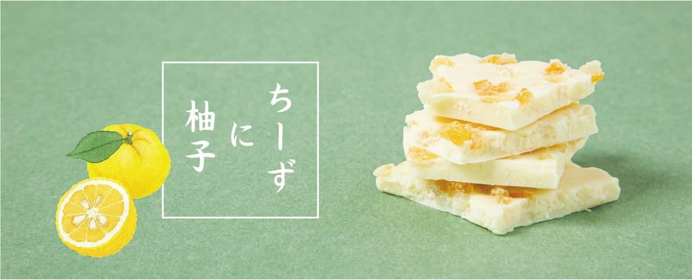 ●原材料名 チョコレート(砂糖、ココアバター、全粉乳、乳糖、植物油脂、脱脂粉乳)(国内製造)、加糖乾燥柑橘外皮(ゆず、砂糖、還元水あめ)、