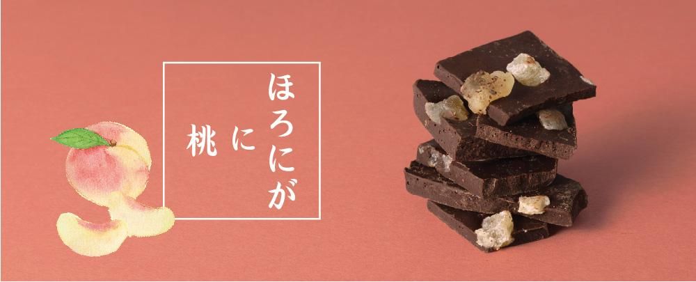 <ほろにがに桃> ほんのりビターチョコに ふんわり甘く香る桃をのせて。